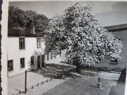 Gammelt pæretræ. Tilhørende familien Meyer, den ældste lægepraksis (fra far til søn) i Danmark. 30. april 2014 måler træet 2,05 meter i omkreds og har en anslået højde på 14 meter. Alder 165 år.