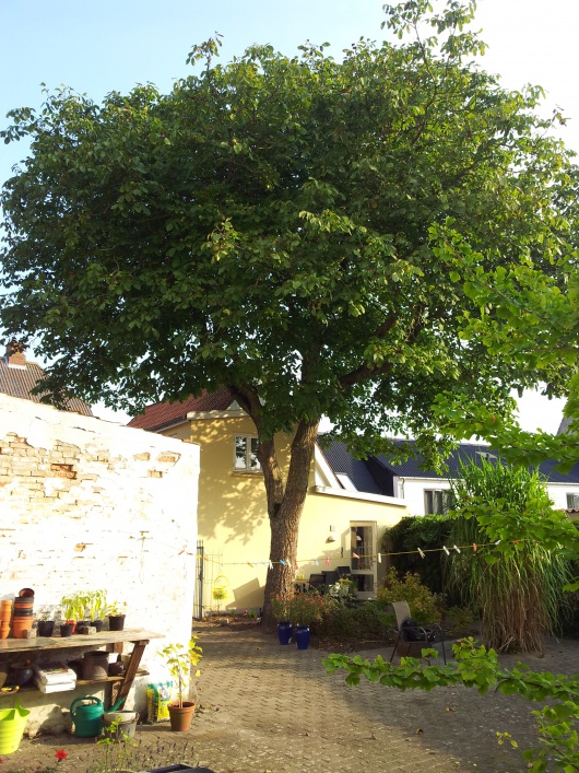 Valnød står i baggørden til Slagtergade 9 i Haderslev. Huset er bygget i 1875. Træet har en omkreds på 176 cm (19/9 2014) Er i fin vækst med en bred skyggegivende krone med mange nødder.